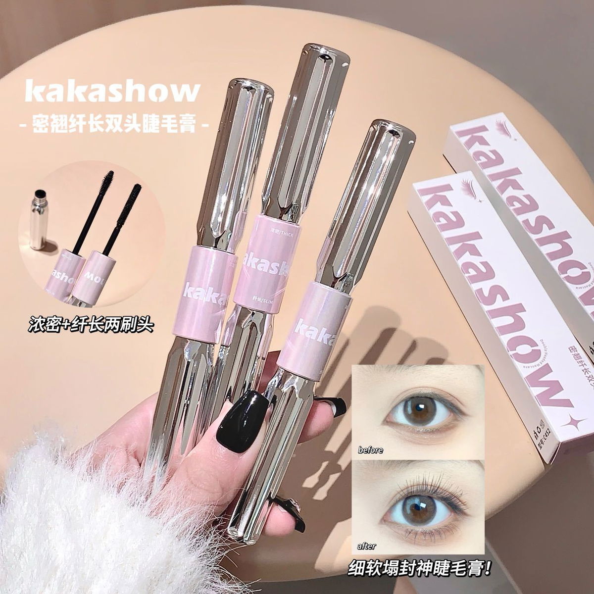 MASCARA DE PESTAÑAS DOBLE PUNTA WATERPROOF KAKASHOW C452 x1