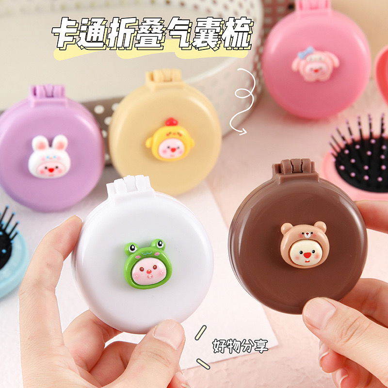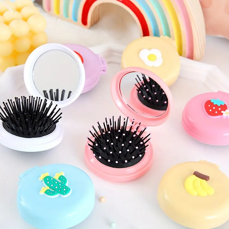 CEPILLO REDONDO PLEGABLE CON ESPEJO MUÑEQUITOS X1